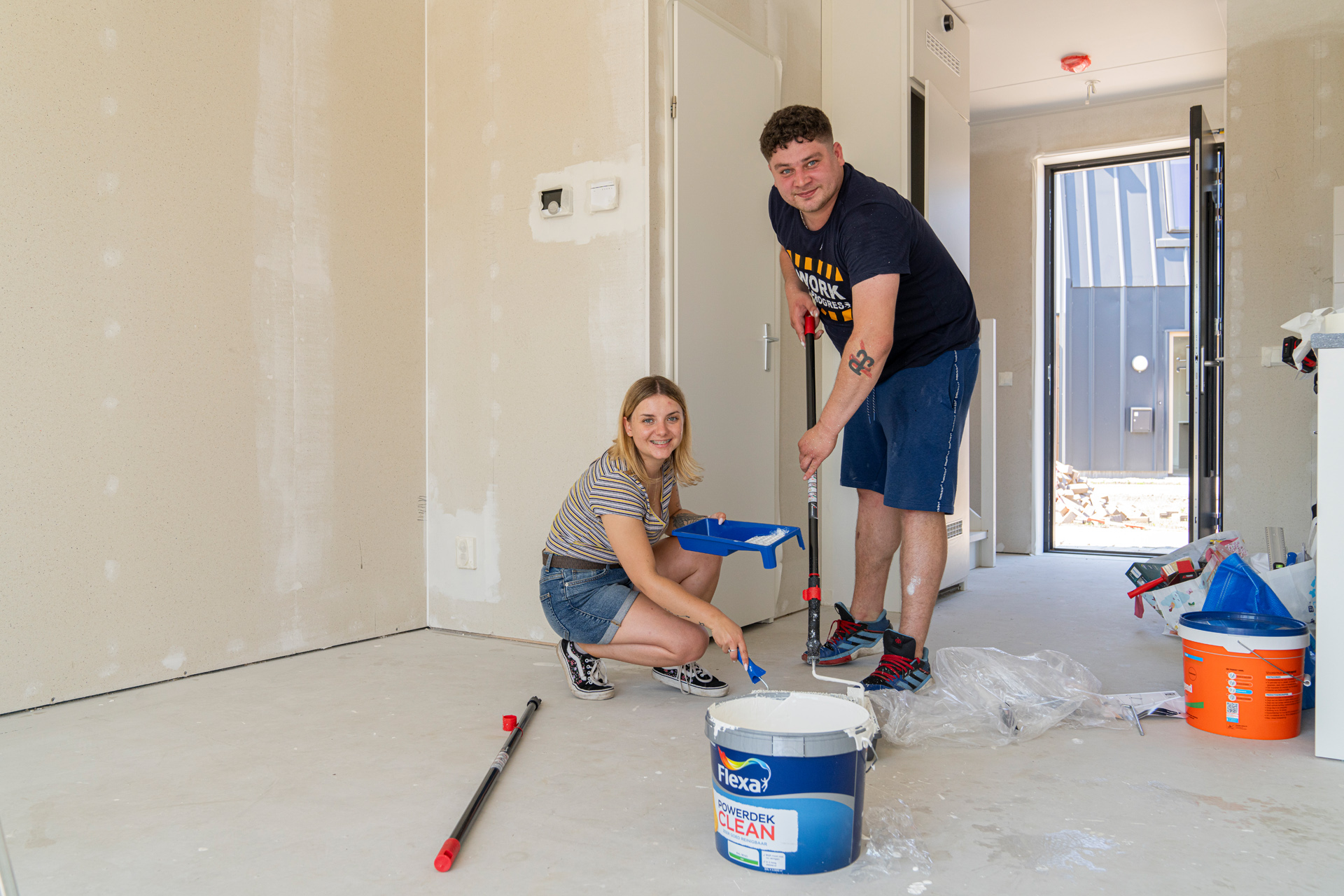 STEK is een hele groene woonbuurt. Op en rondom de erven vind je veel bloemen en planten. En er zijn gemeenschappelijke groenruimtes waar bewoners van STEK samen invulling aan kunnen geven. Bijvoorbeeld met een buurtakker. De zoontjes van Wesna hebben er in ieder geval al zin in. "Zo gaaf dat we hier een moestuintje kunnen maken. En dat hier heel veel plek is om buiten te spelen en nieuwe vriendjes te maken." Terwijl de een nog aan het bijkomen is van de spannende dag is, is de ander al druk aan het klussen. Zo ook Eweline en haar partner die de muren aan het sauzen zijn. "We woonden eerst met heel veel mensen in een huis van het uitzendbureau. We hadden nauwelijks privacy. Toen we dit kregen sprongen we een gat in de lucht. Mijn man is kok en we zouden hier graag met de buren een moestuin maken. We zijn heel blij.